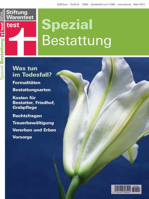 Wenn ein Mensch verstirbt, müssen Hinterbliebene zahlreiche Aufgaben bewältigen. Schritt für Schritt wird in diesem Heft erklärt, welche Formalitäten zu erledigen sind und wie die Angehörigen den richtigen Bestatter finden. Eine Bestattung kostet in Deutschland durchschnittlich 6000 Euro. Ein Überblick über sämtliche Kosten und eine detaillierte Checkliste helfen beim Preisvergleich. Neben Erd- und Feuerbestattung werden alternative Bestattungsformen beschrieben. Außerdem informiert dieses Heft über Möglichkeiten der frühzeitigen Vorsorge in Form von Vorsorgeverträgen und Sterbegeldversicherungen. Antworten auf rechtliche Fragen zu den Themen Bestattung, Testament, Patientenverfügung und Bestattungsvorsorge geben Ihnen Orientierungshilfen.
