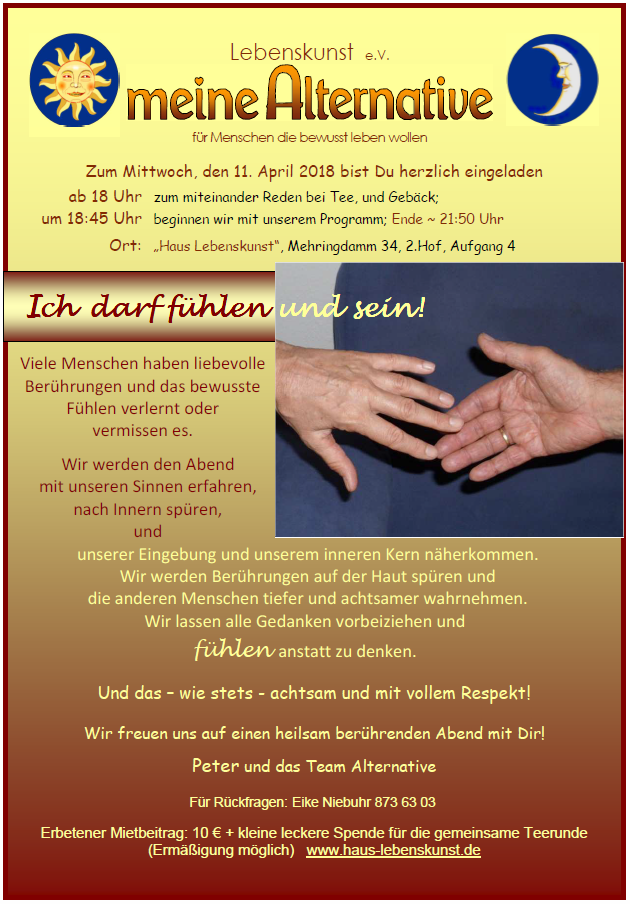 Wir freuen uns auf einen spannenden, aufbauend- berührenden Abend mit Dir