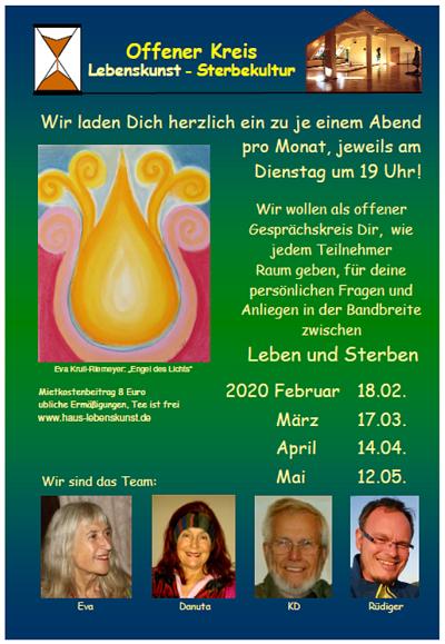 Der Offene Arbeitskreis Lebenskunst - Sterbekultur lädt einmal im Monat dienstags im Haus Lebenskunst ein zu einem Gedankenaustausch.