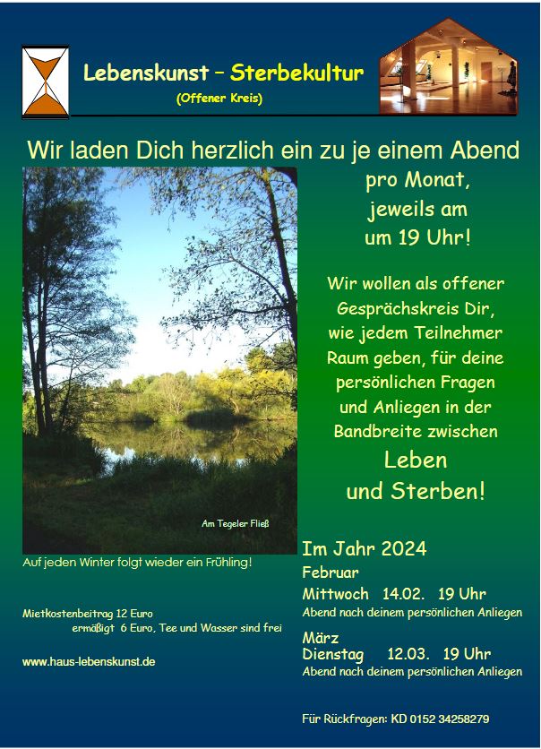 Der Offene Arbeitskreis Lebenskunst - Sterbekultur lädt einmal im Monat dienstags im Haus Lebenskunst ein zu einem Gedankenaustausch.