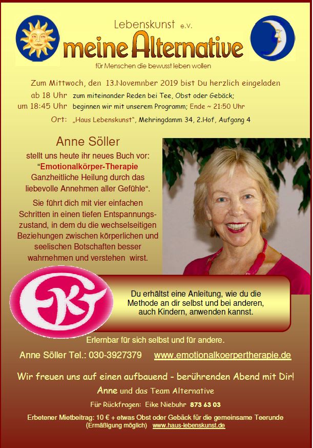 Thema heute: Buchvorstellunf von Anne Söller "Emationalkörper-Therapie"